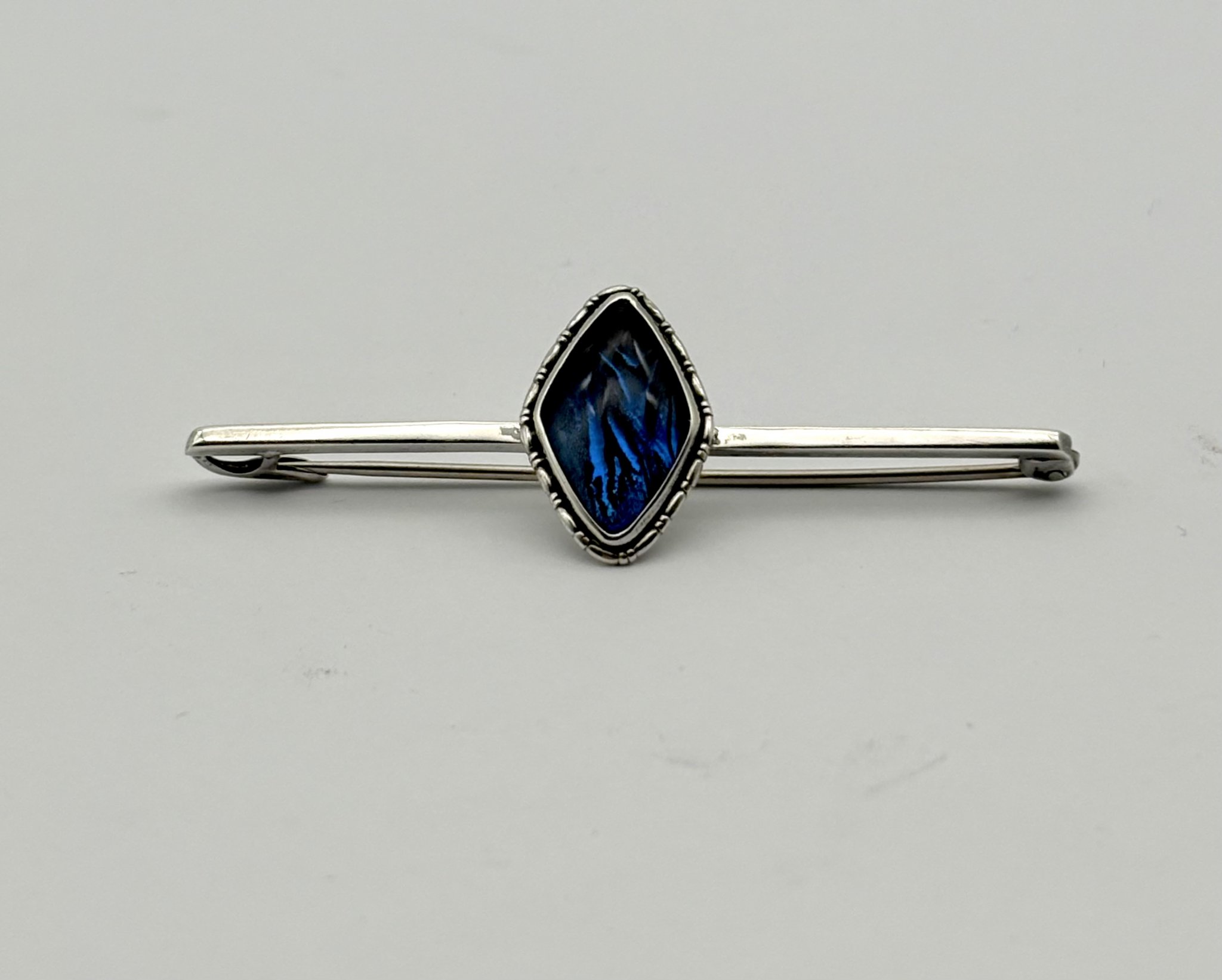 Vintagebrosch i äkta silver med vackert skimrande blå sten.