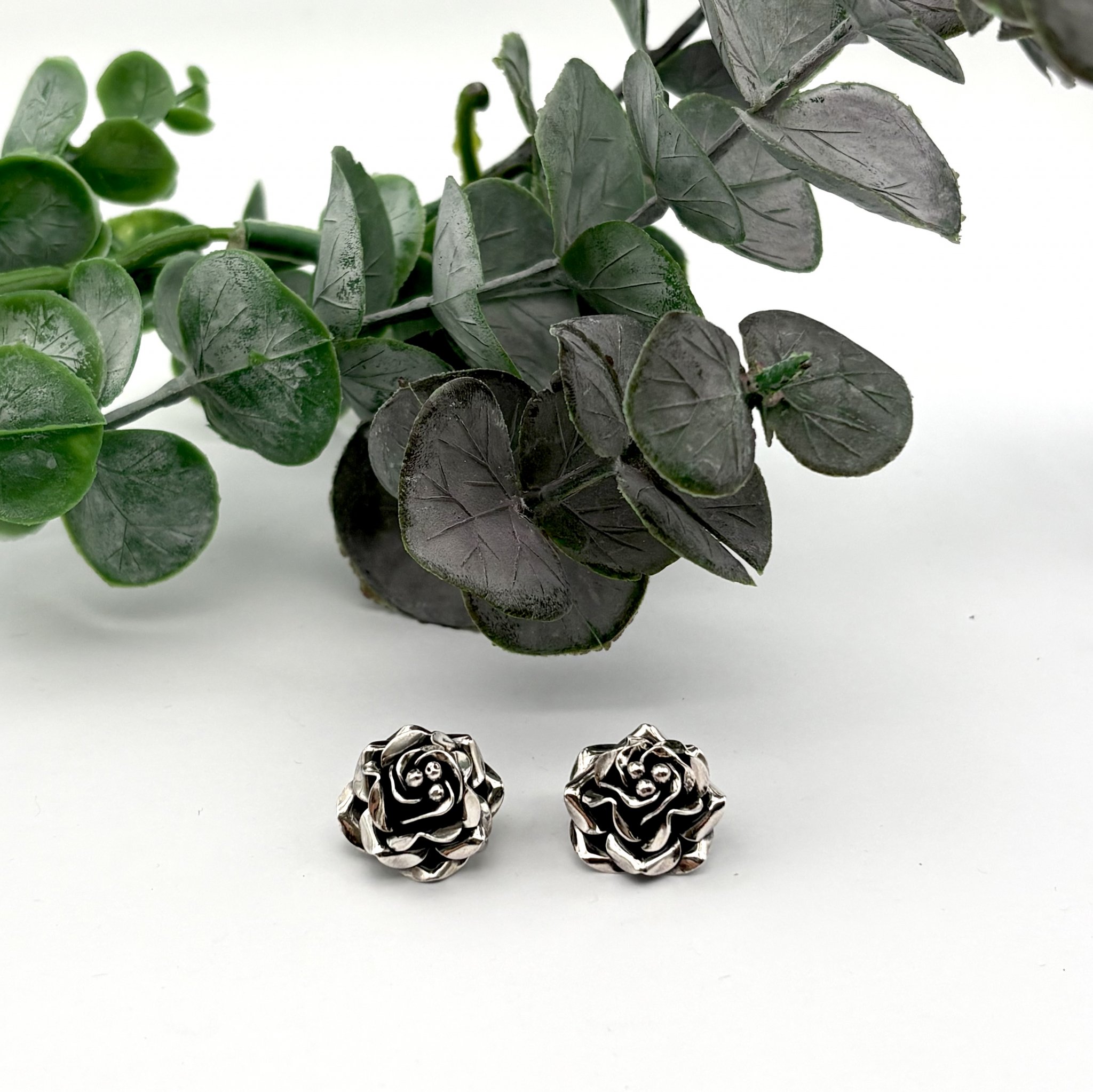 Vintageörhängen, vackra rosor i äkta silver med clips, från Mexico.