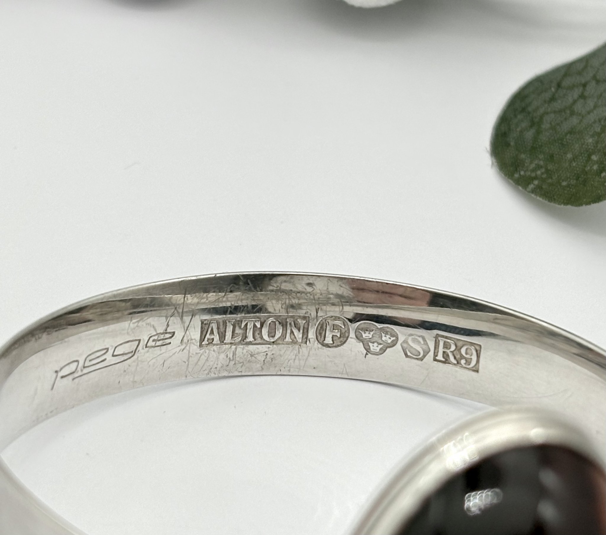 Vintage armring äkta silver tigeröga Pege Alton 1967