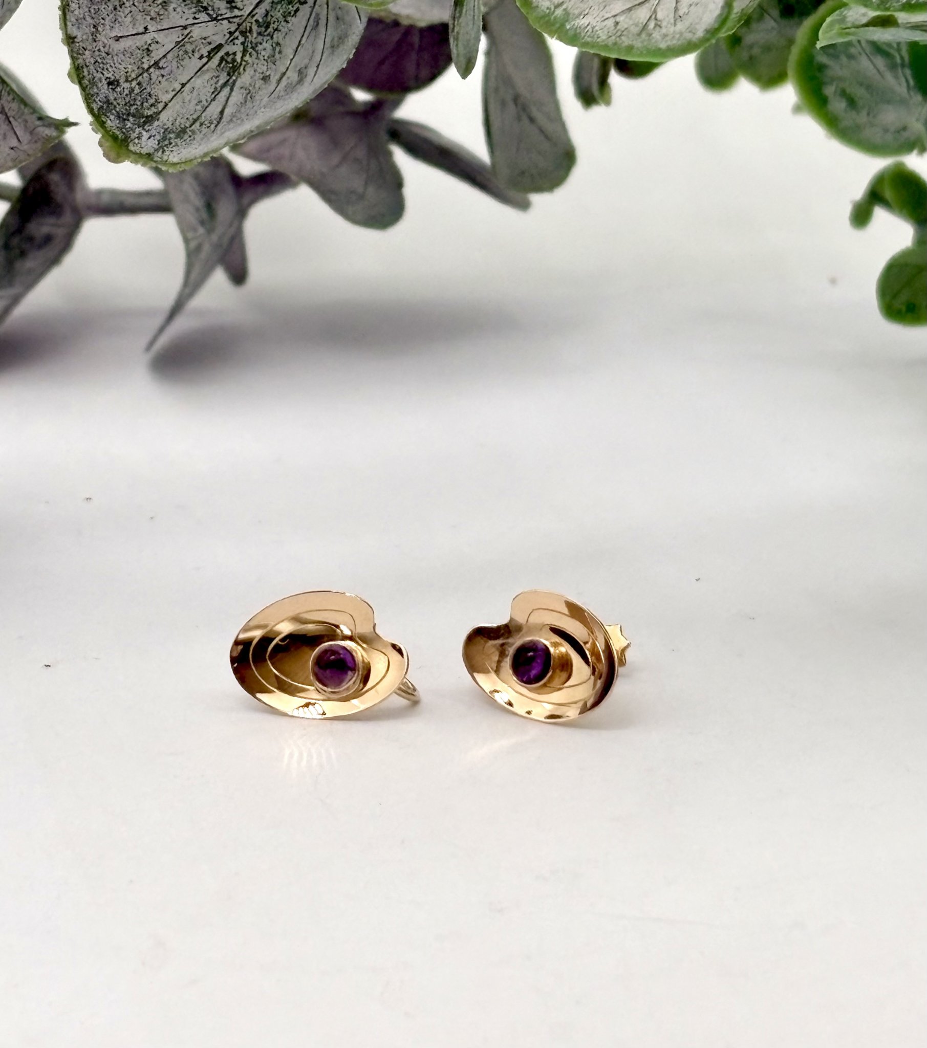 Vintage örhängen 18k guld ametist skruvfästen 1954