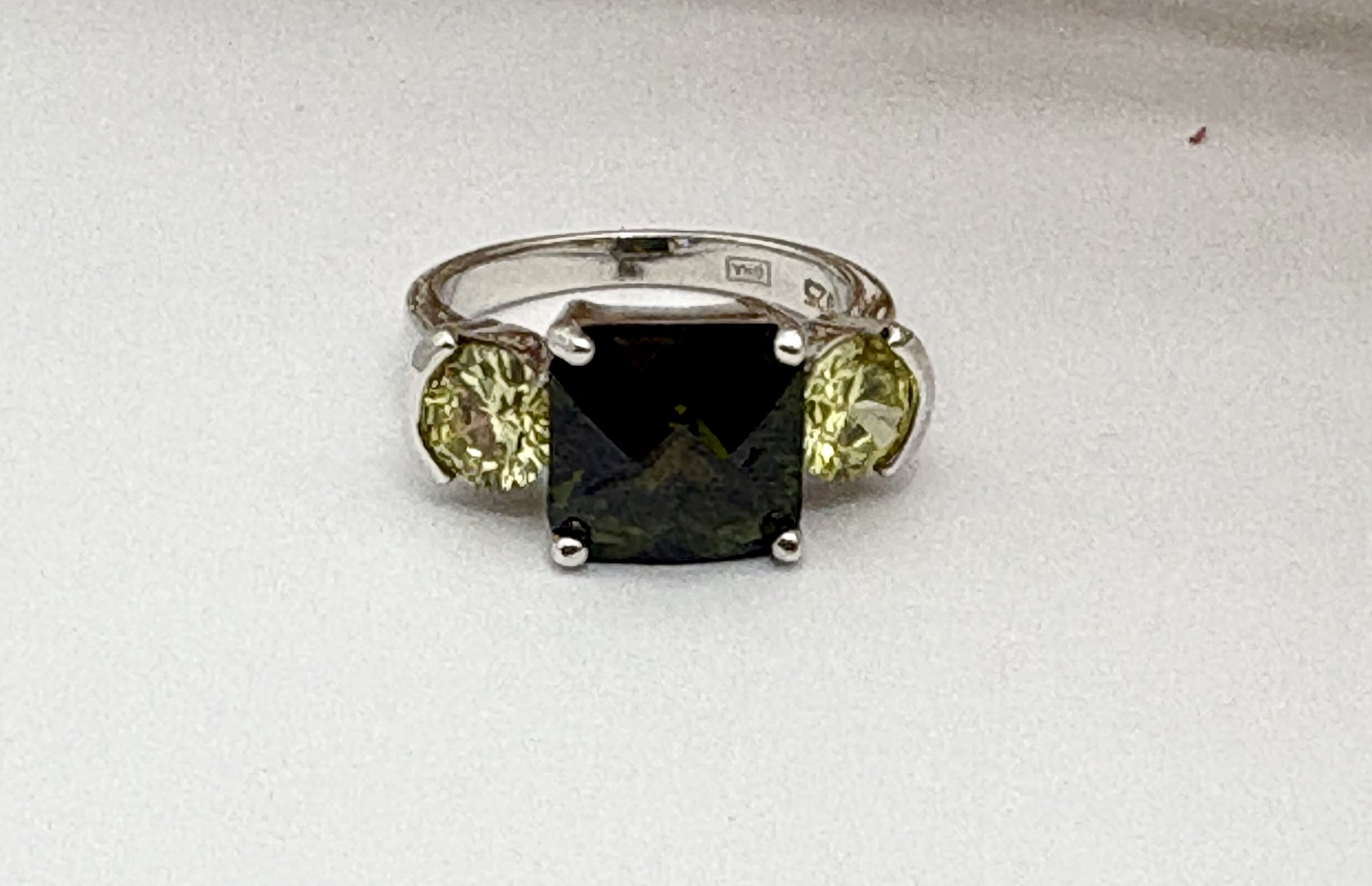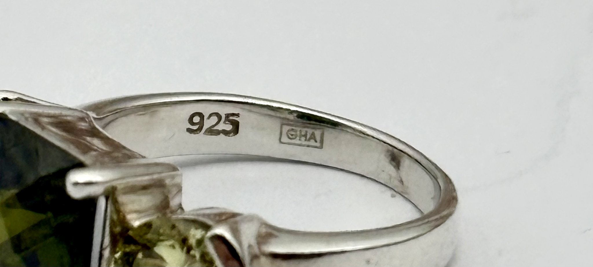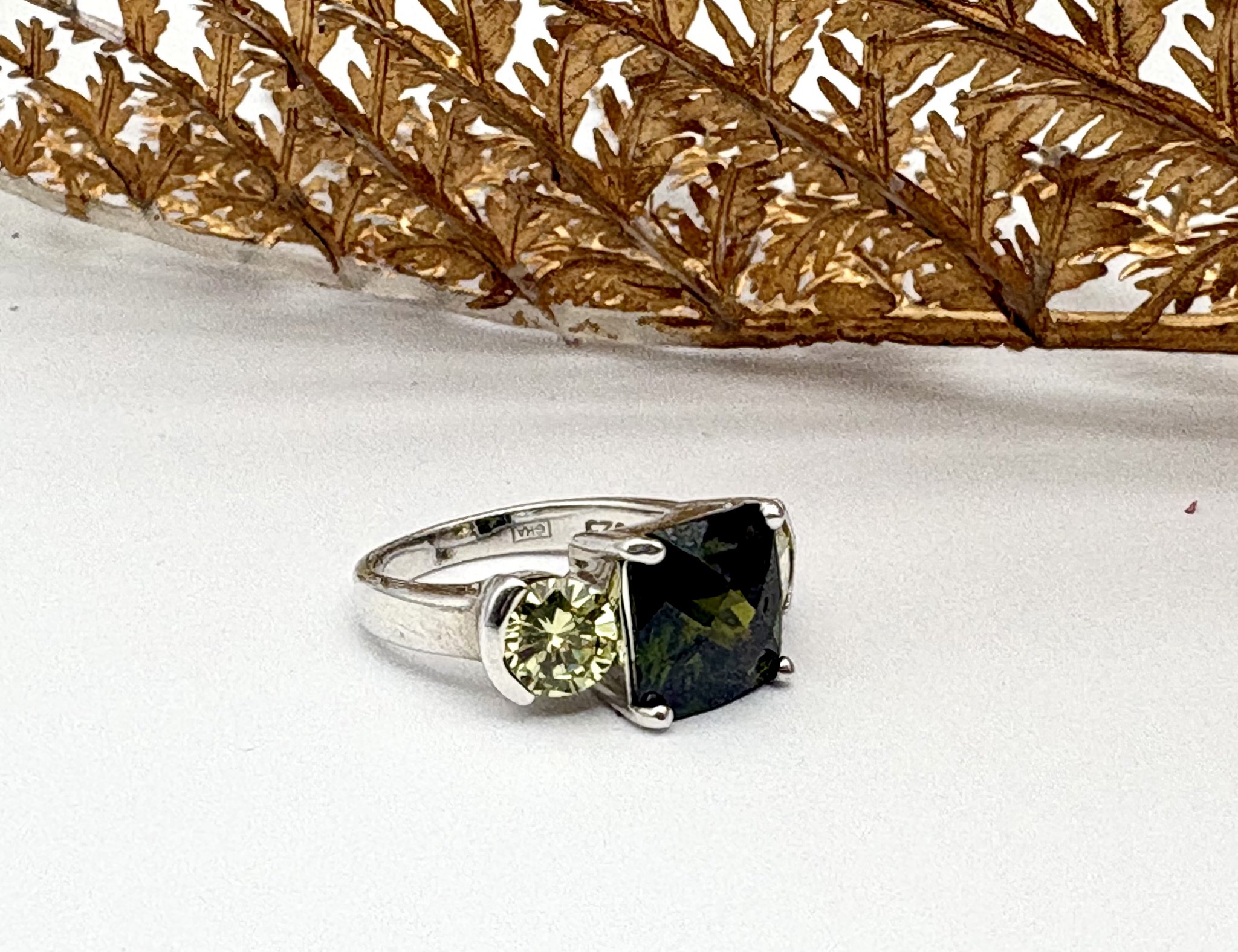 Vintagering i äkta silver med grön samt ljusgröna stenar.